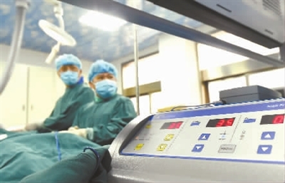 身着“铅衣”的医护人员在辐射环境中进行手术(3月27日摄)。
