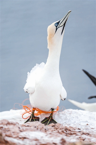 旧渔网等塑料制品很容易被塘鹅误认为是海藻,造成误食或难以摆脱的缠绕