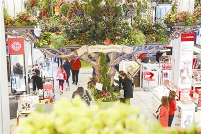 3月26日,在美国纽约曼哈顿,人们参观梅西花展。一年一度的梅西花展于3月25日至4月8日在位于纽约曼哈顿先驱广场的梅西百货商场举行,根据童话故事设计的众多鲜花装置和珍奇植物景观将商场装扮成春意盎然的童话世界。新华社记者 王迎 摄