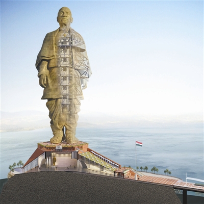据外媒报道,经过三年多的建设,世界上最大的雕像将于10月在印度完工。这座“团结雕像”的高度将达到182米,其高度几乎是美国自由女神像高度的两倍。“团结雕像”旨在纪念20世纪初期印度独立运动的主要领导人之一帕特尔。