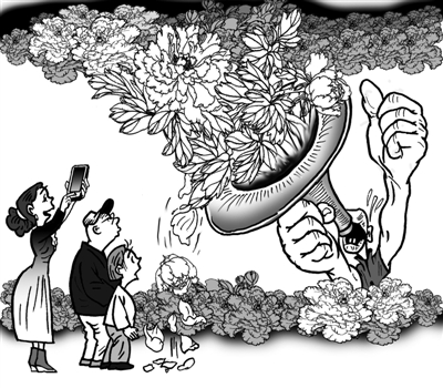 既然名为“牡丹艺术花海节”,游客顾名思义兴然前往,就是为徜徉万亩花海、感受清新自然的田园气息,没见到真花却被大量假花簇拥,难免会有被忽悠之感。这与一些动物园为修缮圈舍将动物送至园外,却依旧开门迎客,一些休闲娱乐场所在顾客享受过相关服务后,才告知需额外消费等并无二致。偌大的景区,不是不可以有假花来补充和点缀,但在介绍和宣传中应事先明确告知,如此“先斩后奏”不仅涉嫌虚假宣传,更严重侵犯了消费者的知情权,到头来再退票款、吃罚单,真心不好玩。李法明/图 韫超/文