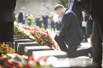 4月10日,在波兰华沙军人公墓,波兰总统杜达参加斯摩棱斯克空难遇难者悼念活动。