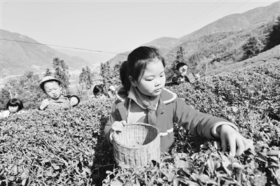 4月10日,湖北省保康县城关镇土门村小学学生在体验采茶。当日,该校组织学生来到村里生态茶园开展教育实践活动,学生在茶园师傅指导下采摘茶叶,学习农事,体验劳作的乐趣和艰辛。