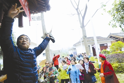 游客们七嘴八舌地打听着,期待着能找出长寿的秘方,有些游客还虔诚地往老人手里塞红包,求合影求握手。