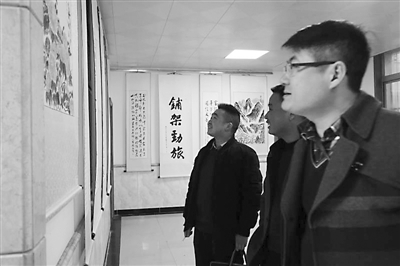 中铁十一局集团三公司职工书画影展落幕,100多幅参展作品全部来自在职和退休职工,观展人数达到了6000多人次。图为职工正在观看展览时的情景。
