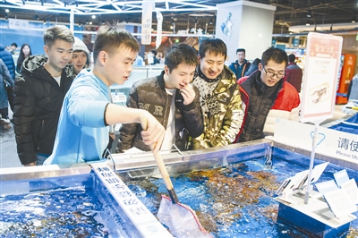 北京市民在新零售线下门店——盒马鲜生亦庄店里购买海鲜产品。本报记者 王伟伟 摄