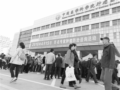 4月15日,由国家卫生健康委员会疾病预防控制局指导,国家癌症中心、中国抗癌协会、中国癌症基金会主办,中国医学科学院肿瘤医院承办的“2018年全国肿瘤防治宣传周活动”在北京启动。今年的主题为“科学抗癌 关爱生命——抗癌路上,你我同行”,旨在帮助癌症患者正确认识癌症,与医院和社会各界携手努力战胜病魔,提高生存率。图为宣传周活动启动现场,百名专家现场义诊。