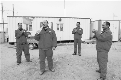 图为顺北5班组的成员们在举行一场沙海中的歌会。