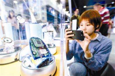 4月23日,在首届数字中国建设成果展览会上,观众在拍摄数字公民安全解码芯片。