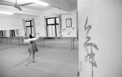 4月18日晚,喜爱舞蹈的庆合初级中学体育教师冯月在练习舞蹈。