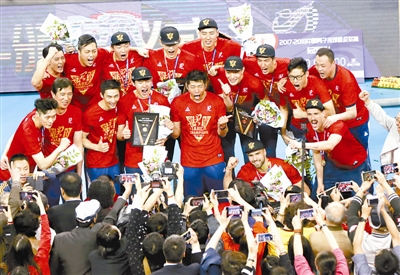 当日,在2017-2018赛季中国男子排球超级联赛总决赛第六回合比赛中,上海金色年华队主场以3比0战胜北京汽车队,最终以4比2的总比分夺得冠军。