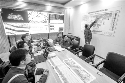 近日,昭通国家级页岩气示范区内,来自浙江油田天然气事业部的工作人员,通过地质工程一体化工作站了解40公里外的测试数据,并做相关分析。地质工程一体化工作站是一个集数据处理、远程决策、安全生产监督于一体的指挥系统,通过六块分屏组,可以滚动显示各钻井及压裂施工现场的实时场景和每口井的地震剖面图、储层评价参数、蚂蚁体平面图等参数,既可以实现三维近景感知,又可以做到远传分析,可视化数据评价优化指导现场作业实施。
