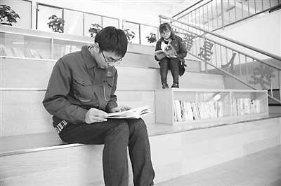 “书籍是人类进步的阶梯”——醒目的大字镌刻在楼梯扶手,拾阶而上,一半台阶,一半图书。这是中铁十四局北京房桥公司京张项目部的特色书屋,让职工“想读书、能读书、爱读书”,在读书中不断进步。许月霞 摄