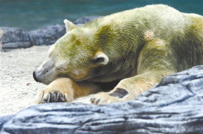 4月25日,由于健康状况恶化,世界上首只在热带出生的北极熊伊努卡在新加坡动物园被实施安乐死。这是伊努卡在新加坡动物园休息。 新华社发(邓智炜摄)