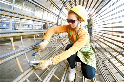 4月29日,“五一”小长假第一天,施工人员在江西省昌赣客专峡江县建设工地上忙碌。