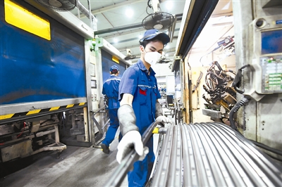 4月29日,在广西柳州汽车城一家汽车零部件企业,曾富润的儿子曾桂华在生产车间作业。