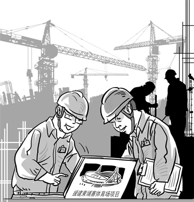 来项目工作已经9个多月了。一天,小田用手机拍摄了一组日落时工地的美景,高塔吊、深基坑、“朝天”的汽车泵……和着天空中的七彩余晖,是那样的宁静而又蓄势待发。发朋友圈时,小田配图文字写道,“Responsibility stays behind,and we go straight.(因为肩负责任,所以义无反顾。)”他说,“我要一直跟着中建八局把体育场建设完成,将来可以骄傲地告诉我的孩子,这座体育场是他老爸参与建设的!”