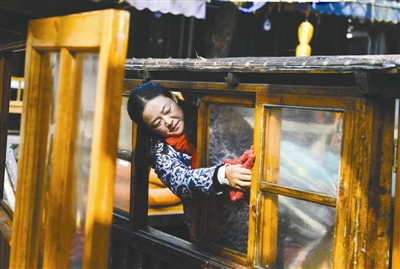 5月1日,江苏省苏州市周庄镇,“文化船娘”吴娟正在擦拭游船玻璃。周庄镇因河成镇,居民枕河而居,很多民居依旧保持明清时期的建筑风貌。为更好地向游客讲述周庄故事,周庄建立起一支“文化船娘”队。