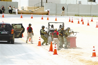 5月2日,在约旦首都安曼郊区的阿卜杜拉国王特战训练中心,中国武警代表队队员参加“勇士竞赛”。第十届“勇士竞赛”国际特种兵比武4月30日在约旦首都安曼郊区的阿卜杜拉国王特战训练中心拉开战幕,来自25个国家的40支代表队参加这次比赛。