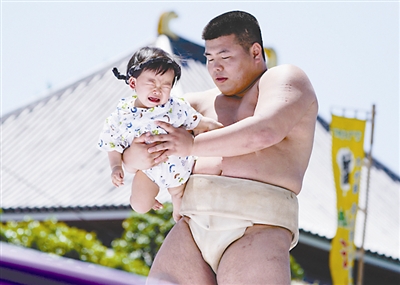 4月28日,日本传统“婴儿啼哭大赛”在东京浅草寺举行,参赛婴儿在业余相扑选手怀中比赛啼哭,以向神灵祈求健康。当天约有160名婴儿参赛,最先哭以及哭声最响亮的婴儿被宣布为比赛冠军。(东方IC供图)