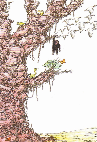 报废交通工具污染土地已成为人们关注的新视角。作者从烂车想到枯木,由腐朽看到荒凉……深邃的漫画靠闭门造车是出不来的。 【印度尼西亚】 吉泰特