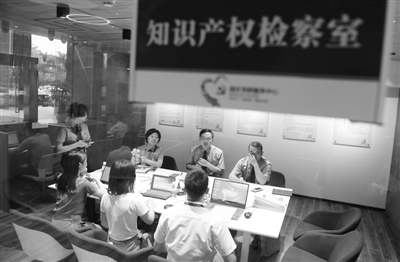 5月7日,深圳市银星科技园的知识产权检察室内,由龙华区检察院派驻的巡回工作人员正在宣讲如何保护知识产权。据了解,该科技园区有多家高精尖科技企业,知识产权保护的需求大。去年年底,应该园区的邀请,龙华区检察院派驻的检察室正式在园区挂牌成立。检察院的工作人员每周来园区集中开展工作,为保护企业知识产权提供制度保障、法律服务和司法救济。目前,深圳像这样的检察室已有4家。