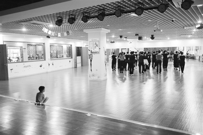 5月8日,深圳市南岭村社区党群服务中心的舞蹈室内,一个小朋友坐在后排看他的奶奶排练舞蹈。除了舞蹈室外,该中心还提供“青春学堂”“四点半学堂”“手工创意坊”等便民服务,旨在为不同年龄段的居民搭建舞台,以满足他们的精神文化需求。据了解,该党群服务中心占地10000平方米,是深圳市面积最大、功能最齐全的社区党群服务中心。