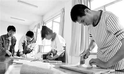 这所学校在当地被誉为“残疾儿童之家”,共招收聋哑、肢残学生58名。近年来,该校开设了适合残疾学生学习的烹饪、烘焙、美容、缝纫等课程,让孩子们能够掌握一技之长。崔松良 摄(新华社发)