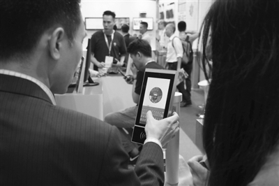图为参展者在腾讯云展台进行体验。