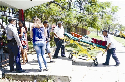 5月19日,在古巴哈瓦那,遇难者家属在哈瓦那法医研究所入口处等待。
