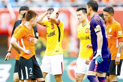 5月20日,广州恒大淘宝队球员郑智(左三)在比赛中。