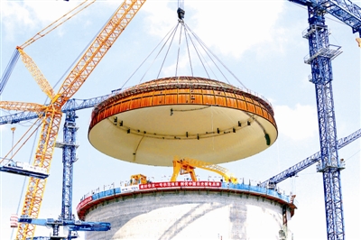 我国自主三代核电“华龙一号”示范项目完成穹顶吊装