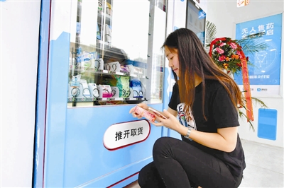 5月24日,郑州一位市民在支付宝“未来药店”无人售药机上选购药品。