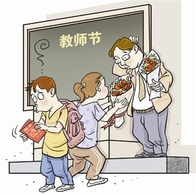 班主任郭老师是个不到三十岁的小伙子,章桦说,儿子很喜欢这位老师,特别希望送上自己的教师节贺卡。没想到,刚上中学的第一个教师节,家长们都特别重视,争着要给老师留下深刻印象。班里有不少家长一大早就给每位老师送去一大捧花束,还有其他礼物。