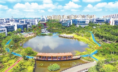 近年来,位于海南老城经济开发区的海南生态软件园探索建设“微城市”模式,在保护并特色塑造原有自然生态底色的基础上,系统打造对标国际一流科创园区的配套设施和服务,园区内教育、医疗、文化、商业、休闲等配套设施一应俱全,把互联网人一天工作、生活、休闲、商务等需求规划在15分钟步行距离内,实现人才对美好生活的追求,让人才引得来、留得住、发展好,以人才推动生态软件园健康有序发展。