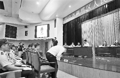图为被告人在法庭最后陈述阶段鞠躬道歉。视觉中国 供图