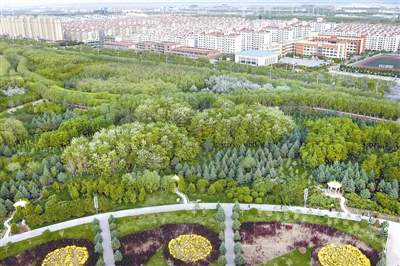 嘉峪关市伴随着酒泉钢铁公司的建设而设立,被称为“戈壁钢城”。昔日这里风沙蔽日,砾石遍地,一代又一代嘉峪关人齐心协力,在荒漠上建绿洲。目前,该市已建成110多处公共绿地、20余个人工湖和7座公园,成为戈壁荒滩上的生态宜居之城。图为市区一角。新华社记者 谢秀栋 摄