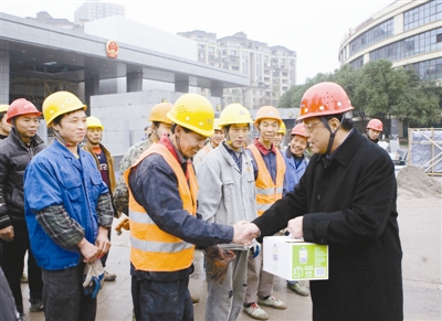 中冶建工党委书记、董事长姚晋川(右一)慰问一线作业人员