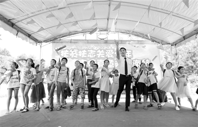 5月26日,孩子们与机长陆崚放飞写满梦想的纸飞机。