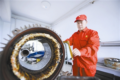 就这样,采油生产维护所需的40多项维修技术,刘成做到了样样精通,并在融会贯通的基础上,迈开了大胆创新的步伐。水套炉清垢工作,费时又费力,刘成反复琢磨后,找来旧车刀焊在钻头上,自制出烟管清炉器,使得清炉效率大大提高;抽油机更换电机,常需四五个壮汉人拉肩扛,劳动强度大且安全风险高,见状,刘成发明出电机更换架,从此,只需两人操作就能轻松搞定……