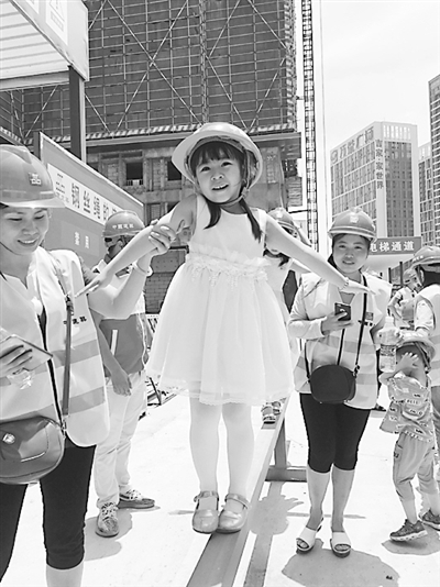 图②:“今天玩得很开心!”12岁的张钰鑫兴奋地说。5月26日,在“六一”儿童节来临前夕,中建三局三公司厦门分公司开展主题为“快乐过‘六一’ 亲子进工地”的关爱农民工子女活动,来自分公司在建项目的30名农民工及其子女共同参加本次活动。图为儿童在进行平衡木体验。