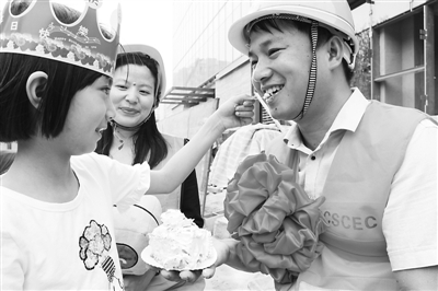 据中建一局北京公司三利大厦改扩建项目经理毛传东介绍,儿童节即将到来,他们专程从河北、河南把要过生日的孩子们接来,与父母团聚。本报通讯员 邱晔 摄