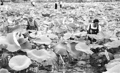 6月3日,荷农们在荷花基地里挑选准备出售的观赏性荷花。进入初夏时节,浙江省湖州市长兴县吕山乡圣莲苑荷花基地内200多亩30多种各色荷花竞相开放。吕山乡近年来逐步升级打造“荷花之乡”,借助“生态+创意”的理念种植、销售观赏盆栽荷花,推动了乡村旅游经济,带动荷农收入增长,助力乡村振兴。新华社记者 徐昱 摄