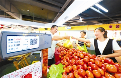 近日,河北省邯郸市复兴区智慧便民市场正式营业。这是一家依托“互联网+”技术运营的智能化新型市场,配有食品安全监测站,随时供市民监测食品安全。市场内的摊位前配备智能电子秤,便于市场管理人员对商品销售价格等信息进行监管,消费者采购流程更加透明高效。