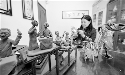 面塑艺人李春芳在河北邯郸市丛台区工作室内制作面塑作品。