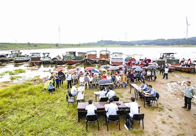 6月5日,江西九江,都昌县法院“环境资源巡回法庭”来到左里镇清辉村,在渔民聚居地现场审理10名被告人非法捕捞水产品一案。“环境资源巡回法庭”成为渔民身边的法治普及课堂,让湖区群众认识到破坏生态环境是违法的以及保护生态环境的重要性。东方IC 供图