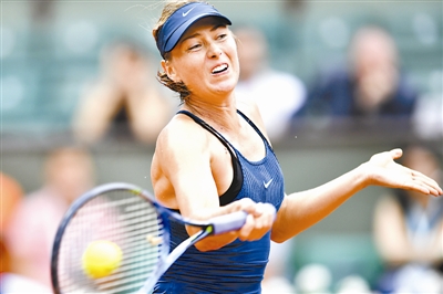 6月6日,莎拉波娃在比赛中回球。