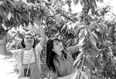 6月7日,游客在秦皇岛市山海关区石河镇毛家沟村的果园采摘樱桃。