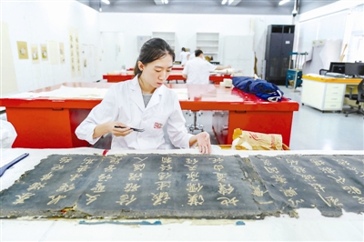 6月9日,一名修复师在故宫文物医院修复室修复故宫收藏的书法作品。