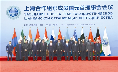 6月的青岛,风景如画。国际会议中心外,碧海蓝天,与会各国国旗、上海合作组织会旗和与会国际组织旗帜迎风飘扬。上午11时许,会议正式开始。